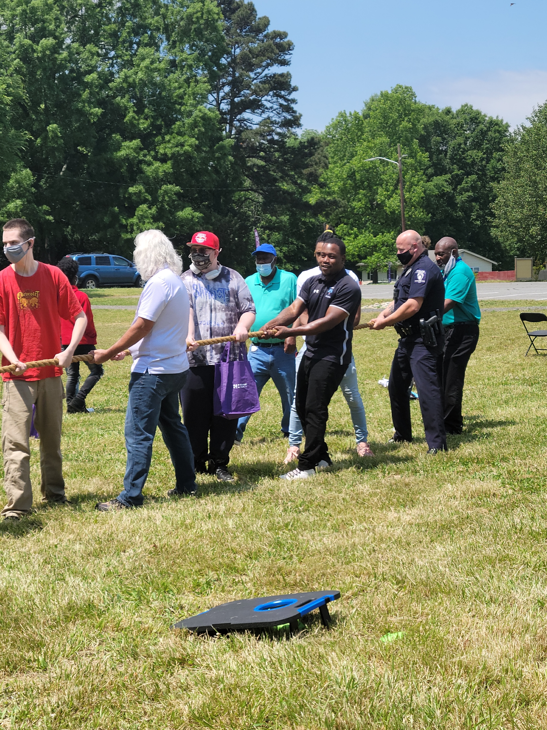Fun with the Community PoliceTug-a- War so much fun Guys lost twice lol
